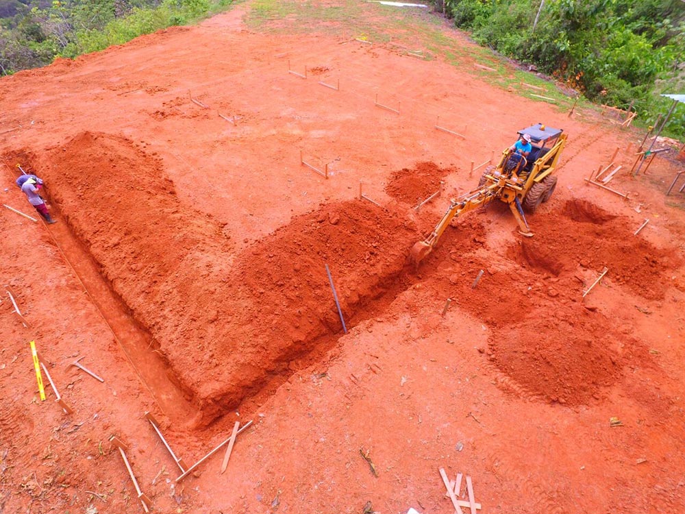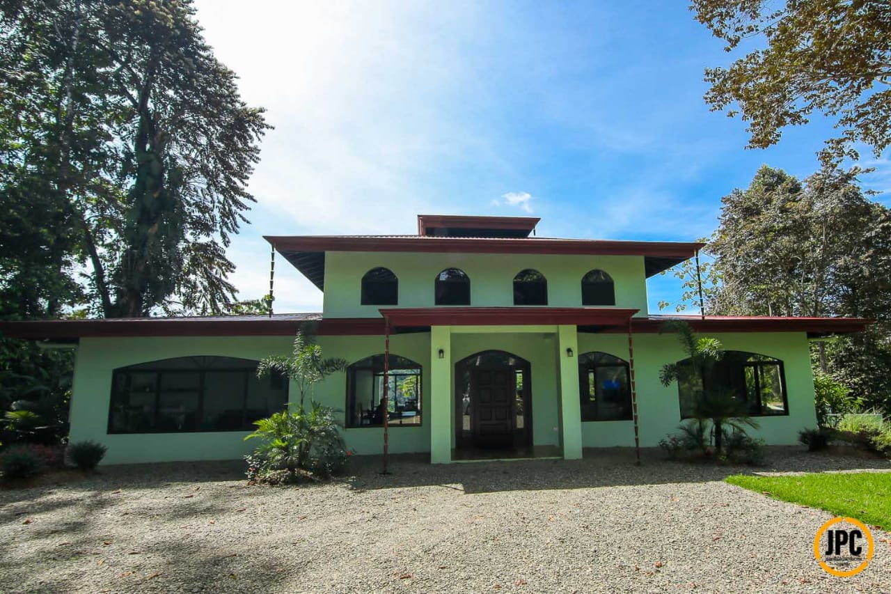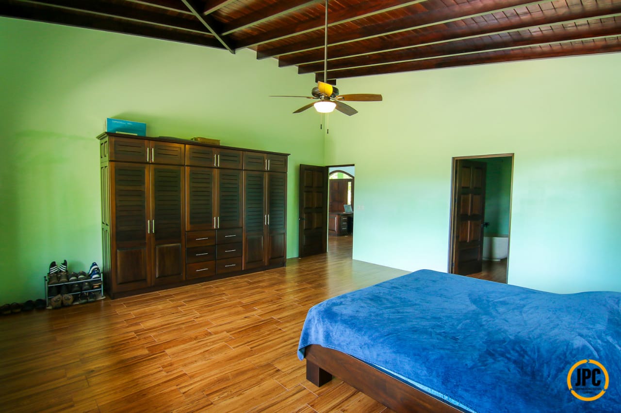 Proyecto personalizado según los requerimientos del cliente. Estilo arquitectónico colonial con grandes espacios abiertos y un techo muy alto, cuenta con un monitor tipo cúpula para la extracción del aire caliente y además para iluminación natural. Se construyó una piscina con borde infinito, grande y profunda, de 70m2 de área con 2m de profundidad en más de la mitad. Cuenta con piso en porcelanato imitación madera y techos artesanados con madera natural de Laurel.